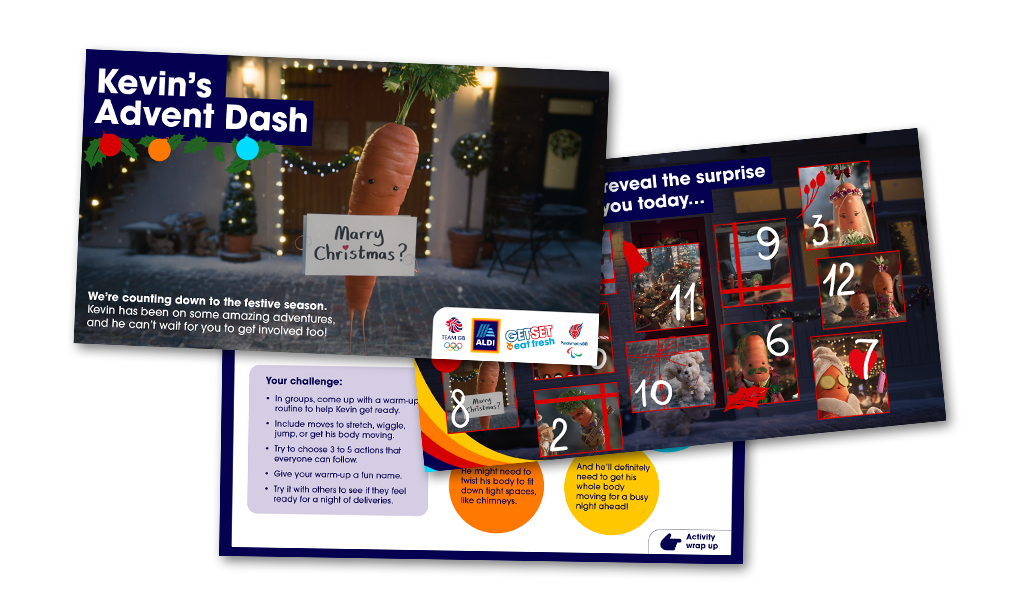 Use this resource to support pupils age 5–11 to explore a festive calendar featuring Kevin the Carrot's adventures – inspired by the iconic TV ad. Each window takes pupils on an adventure with a fun food or movement challenge inside.